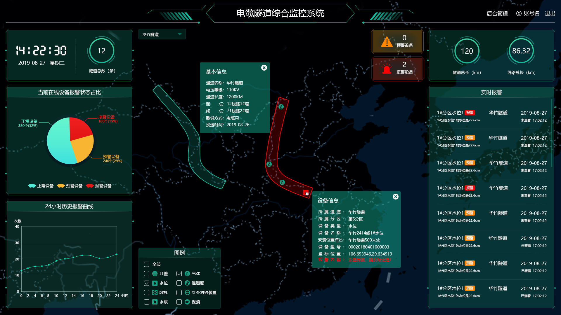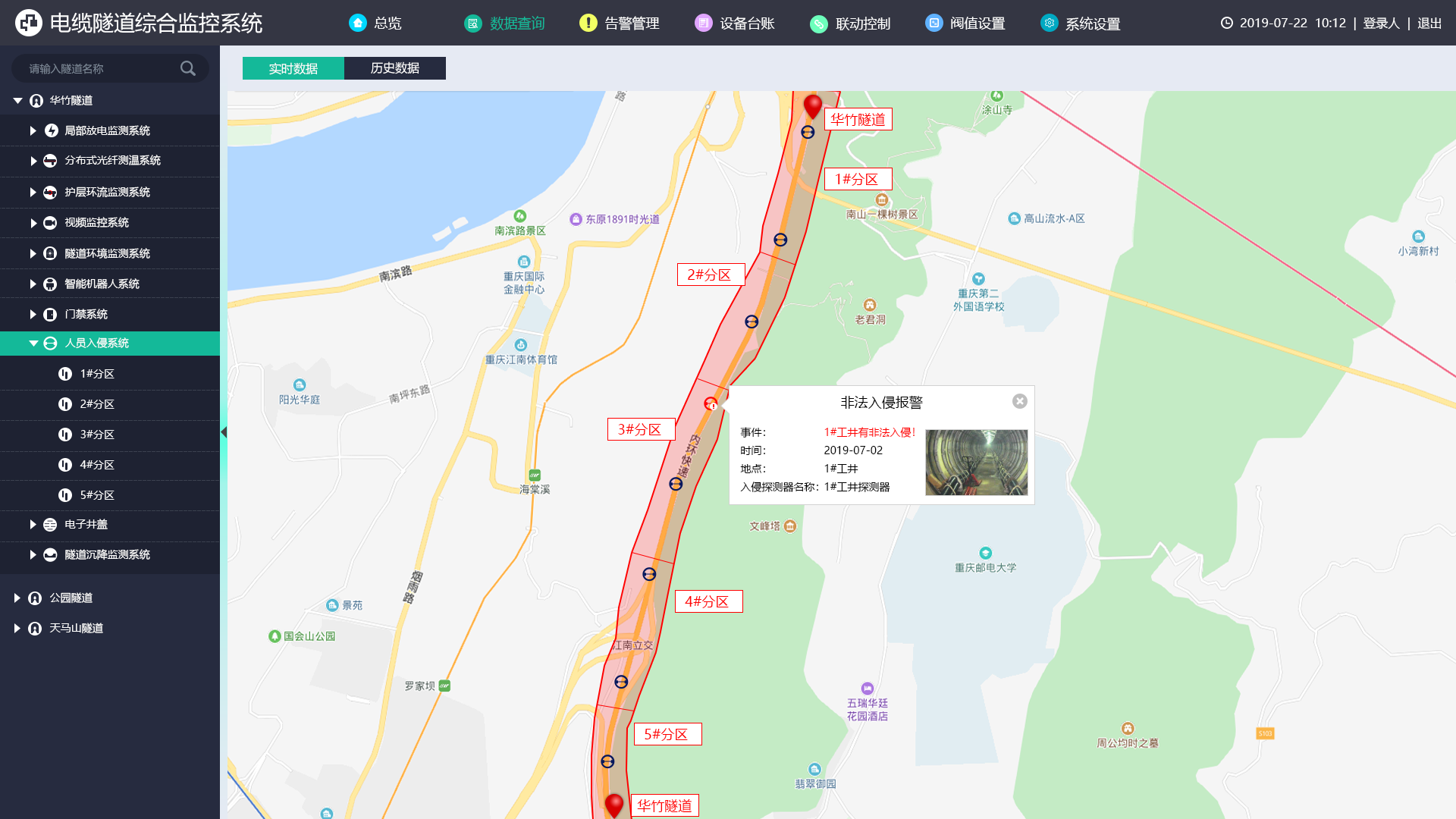 第一时间展示隧道的报警信息。